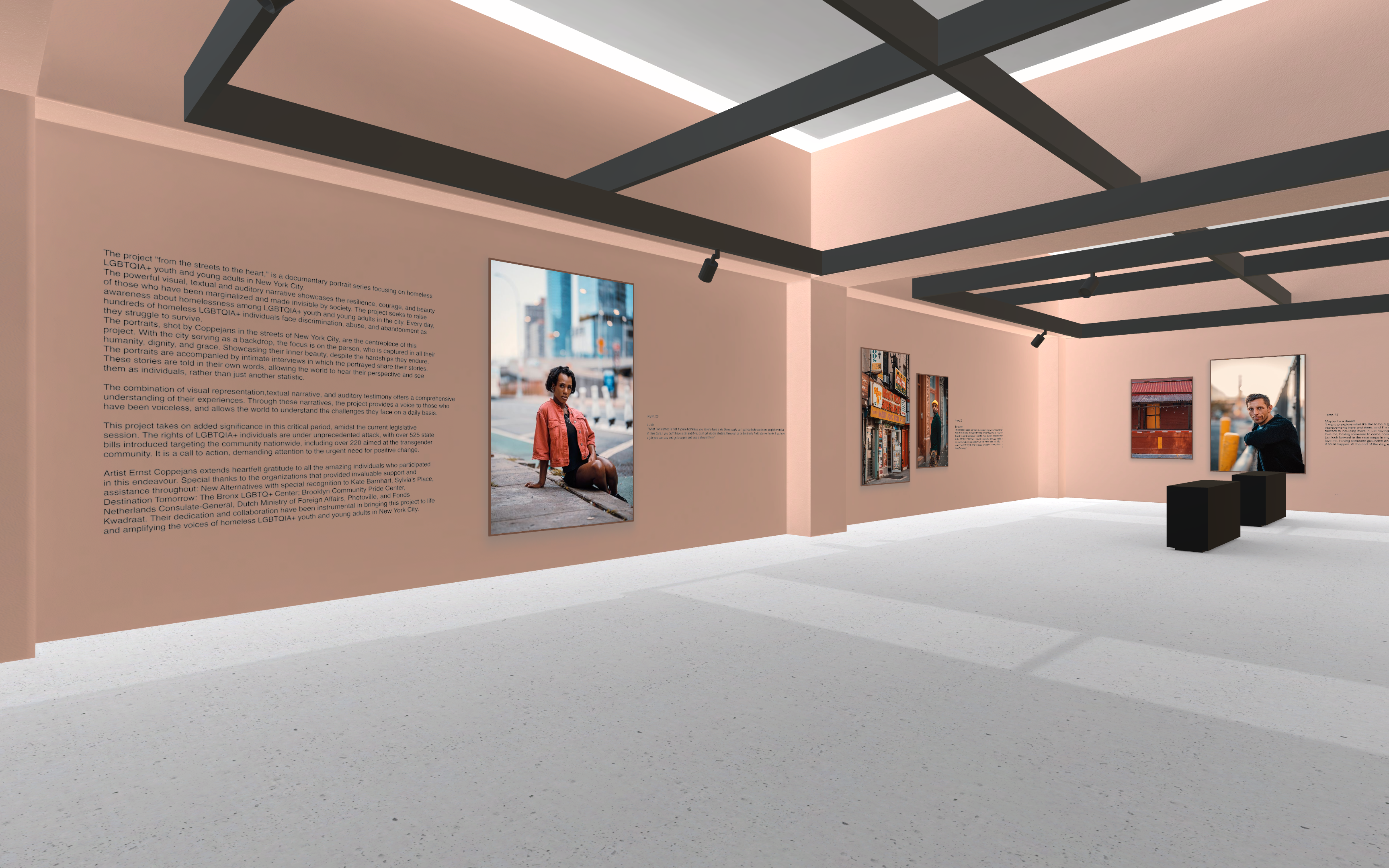 Step into the virtual world of "from the streets to the heart," where the powerful narratives of LGBTQIA+ homeless youth come alive. This unique exhibition, originally showcased in New York this summer, has been thoughtfully transformed into an immersive online experience, crafted for a broader audience.